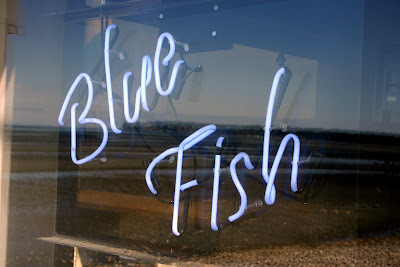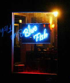 夜里周围一片寂静,只有海边的蓝鱼酒吧灯火依然。