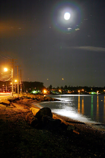 晚上正是月明时,海湾一片银光。