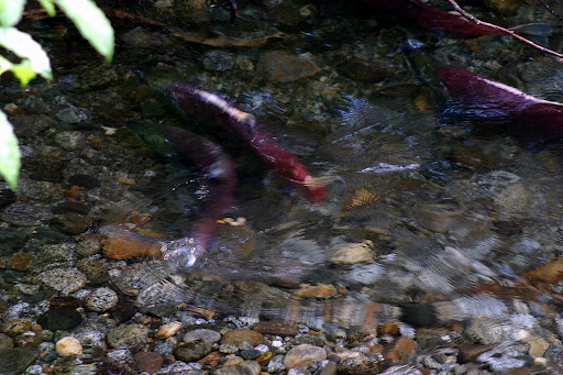 在阿拉斯加,经常看到很浅的小溪里面有很大的鱼,这些鱼在溪水里游动的时候会发出哗哗的响声,当我看见有人用鱼钩在这些地方钓鱼时,心里不禁发笑,拿大网抄不就结了。