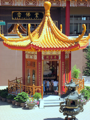 从西雅图向温哥华行驶,过了美加边境后不久,在99号高速路的左手边就会看到一座佛寺,这就是灵严山寺,