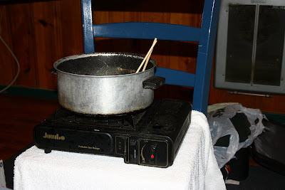 本来应在野外埋锅灶饭的节目,今天就改在室内了。